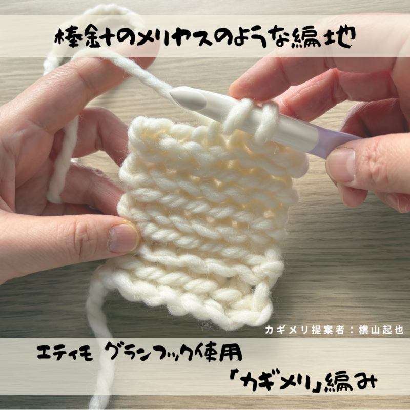 編みキノコ作家 横山 起也先生提案の「カギメリ」編み。