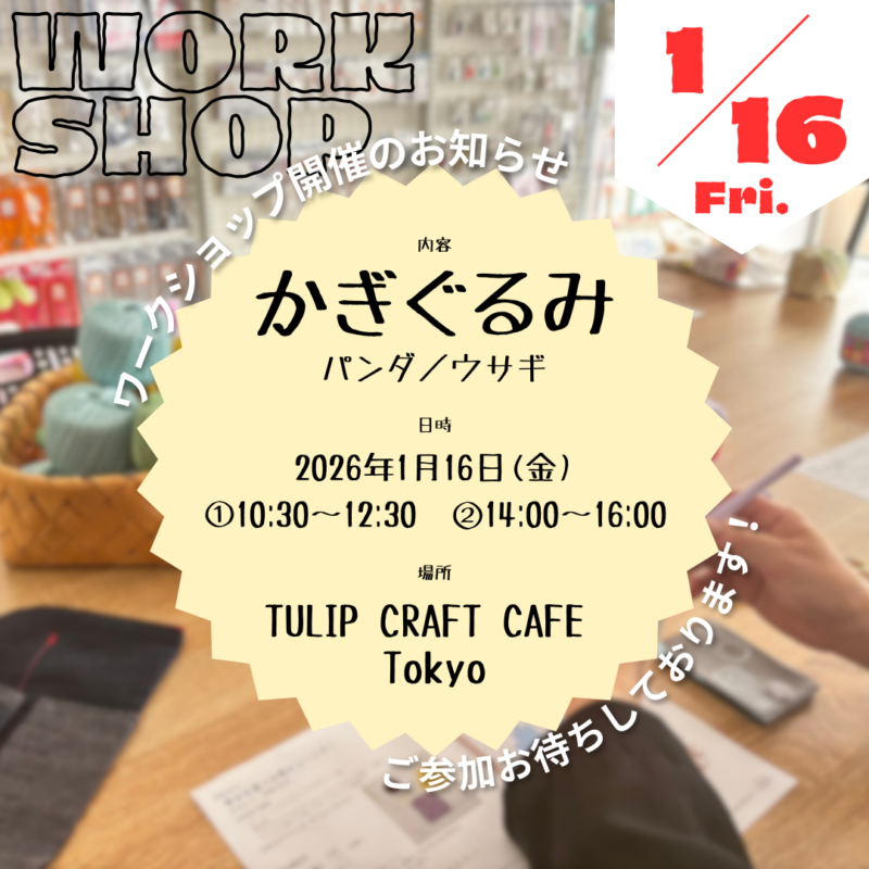 1月のワークショップ開催のお知らせ at “TULIP CRAFT CAFE Tokyo”