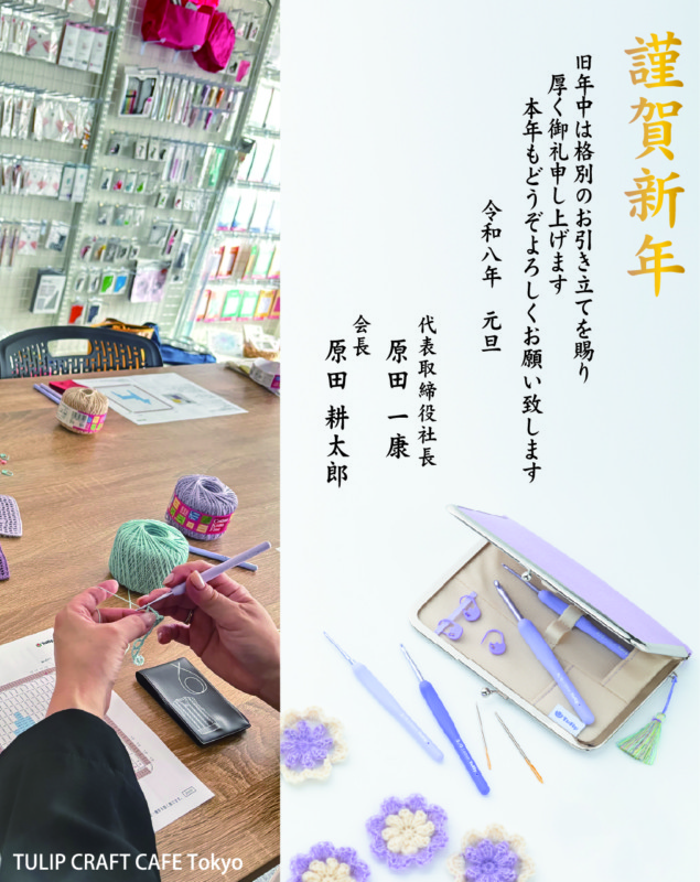 手芸トピックス 2026.01.01 お知らせ 新年のご挨拶 旧年中は格別のお引き立てを賜り 厚く御礼申し上げます 本年もどうぞよろしくお願い致します 令和八年 元旦 チューリップ株式会社 会長 原田 耕太郎 代表取締役 原田 一康 次頁