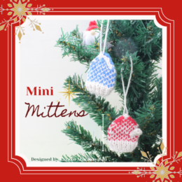 輪針を使用し、ニードルレストやクリスマスのオーナメントに活用できる、編み込み模様のミニミトンを編みます。