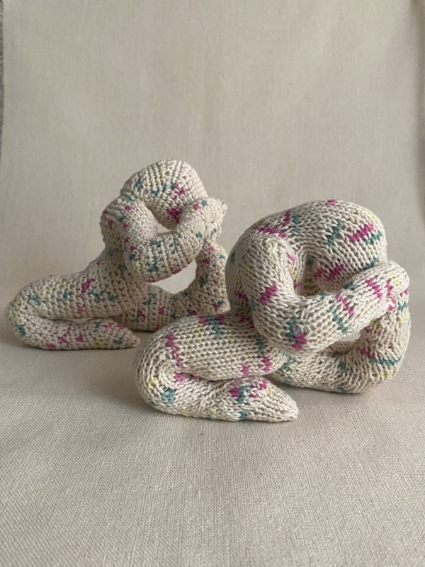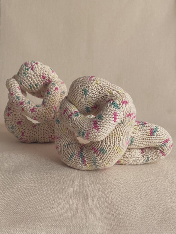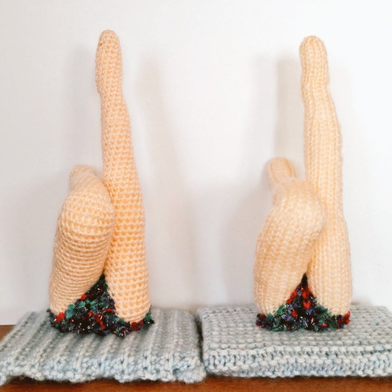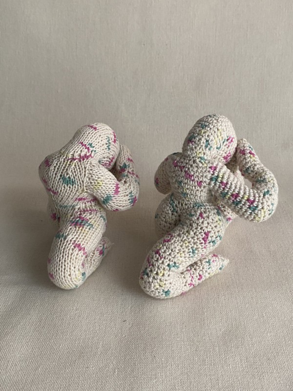 あみぐるみと言えば、かっちりとかぎ針で編まれた作品が主流でした(個人の見解です)が、棒針で編んだあみぐるみは柔らかな手触りが特徴で、また違った良さがあります。