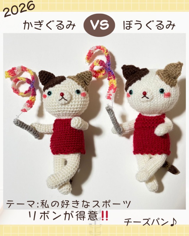 Xのポスト本文に、ハッシュタグ「#かぎぐるみvsぼうぐるみ2026」を入れて写真を投稿し、投稿ツリーに使用した道具や毛糸、一番の推しポイントなどを書き込んでください。